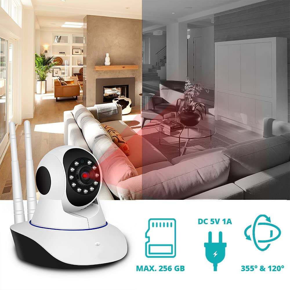 A 720P HD felbontás tiszta és részletgazdag képet biztosít, míg a kamera 355°-os vízszintes és 120°-os függőleges mozgathatósága lehetővé teszi a széles látószögű megfigyelést. A telefonos vezérlés segítségével könnyedén beállítható a kívánt nézőpont.