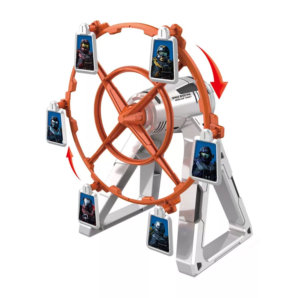 A játék bekapcsolása után az állványon elhelyezett forgó tárcsa automatikusan mozog, így a célpontok eltalálása még izgalmasabb és kihívást jelentő feladat. A mágneses rögzítésnek köszönhetően a célpontok könnyedén levehetőek és visszahelyezhetőek, így a játék sosem válik unalmassá.