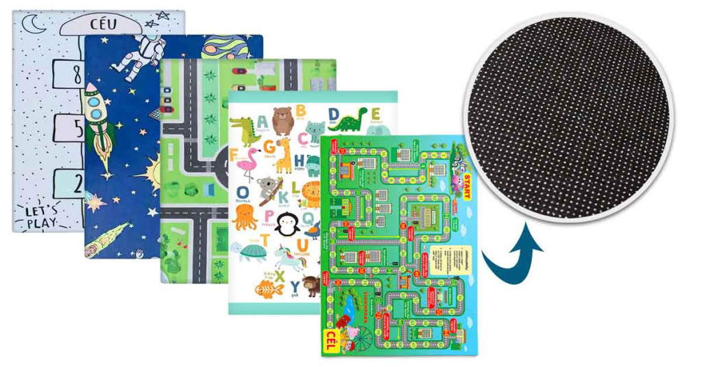 A különböző minták – például ugróiskola, közlekedési utak, ABC állatokkal vagy társasjátékokkal – fejlesztik a gyermek mozgáskoordinációját, kreativitását és logikai készségeit. A magyar nyelvű feliratok segítik az írás és olvasás előkészítését, így a szőnyeg nemcsak szórakoztató, hanem oktató szerepet is betölt.