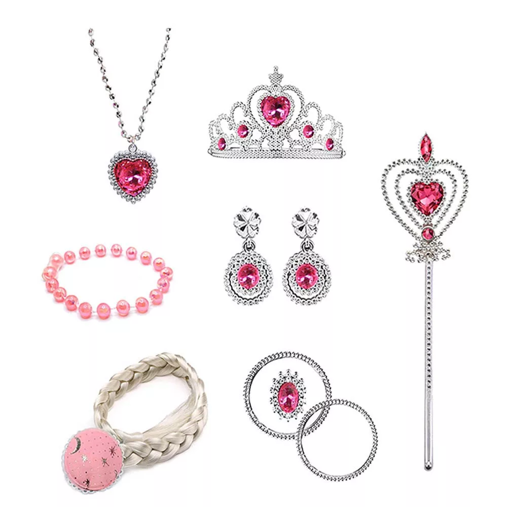 A nyaklánc, a karkötők és a jogarnak köszönhetően a gyermekek egyedi módon fejezhetik ki kreativitásukat. A szettben található díszes táska és nyomott mintás kesztyű tökéletes befejezést adnak az elegáns öltözetnek. A póthaj még különlegesebbé teszi az átváltozást, teljesítve minden kis hercegnő álmait.