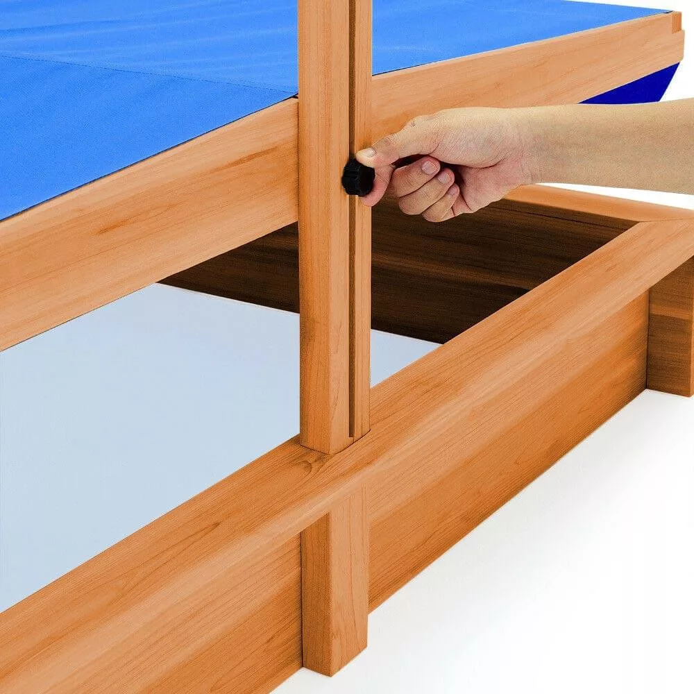 A fa homokozó árnyékoló tetővel ideális választás a gyerekek szabadtéri játékához. Állítható magasságú, leereszthető tetője nemcsak a napfénytől, hanem a szennyeződésektől is védi a homokot. A 4 oldalon található kényelmes fa ülődeszkák akár 80 kg teherbírással rendelkeznek, így a szülők is csatlakozhatnak a játékhoz.