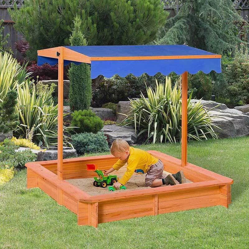 Ez a homokozó tökéletes kiegészítője lehet minden kertnek, ahol a gyerekek biztonságos, árnyékos környezetben élvezhetik a játék örömeit.