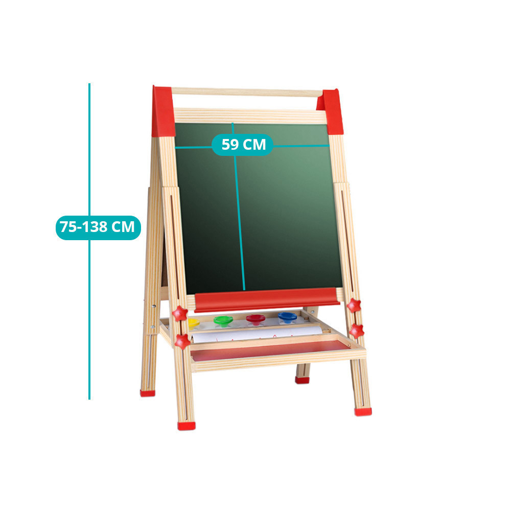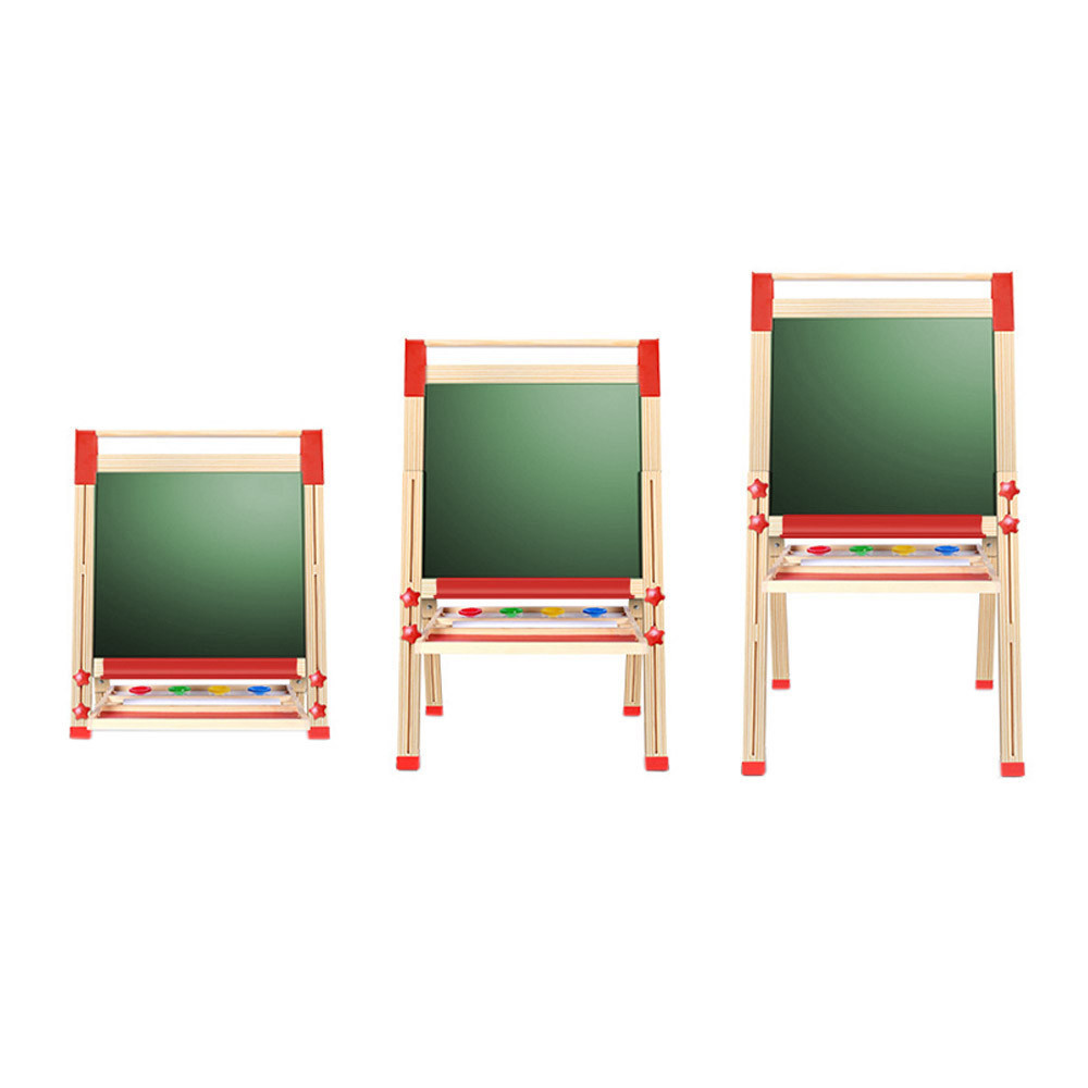 Ez az állítható magasságú, kétoldalas fa játéktábla ideális választás a gyerekek kreatív és tanulási tevékenységeinek támogatásához. A hagyományos krétatábla és a fehér mágneses filctábla sokoldalú lehetőségeket kínál az írás, rajzolás és játék számára. Tökéletes megoldás gyerekszobákba vagy óvodákba, mivel alkalmazkodik a gyerekek növekedéséhez és igényeihez.