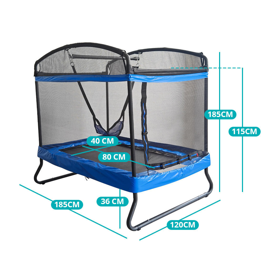 Szeretnéd, ha gyermeked aktívan és biztonságosan mozoghatna a kertben? Ez a trambulin hintával és védőhálóval garantálja a felhőtlen szórakozást és a maximális biztonságot! Strapabíró acélszerkezete stabilitást biztosít, míg a 115 cm magas védőháló megakadályozza az esések lehetőségét. A hintával kiegészített trambulin még több mókát és változatosságot kínál, így a gyerekek hosszú órákon át élvezhetik a mozgás örömét.