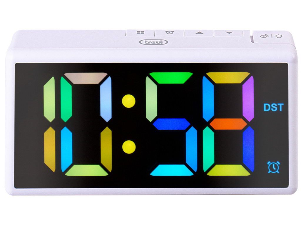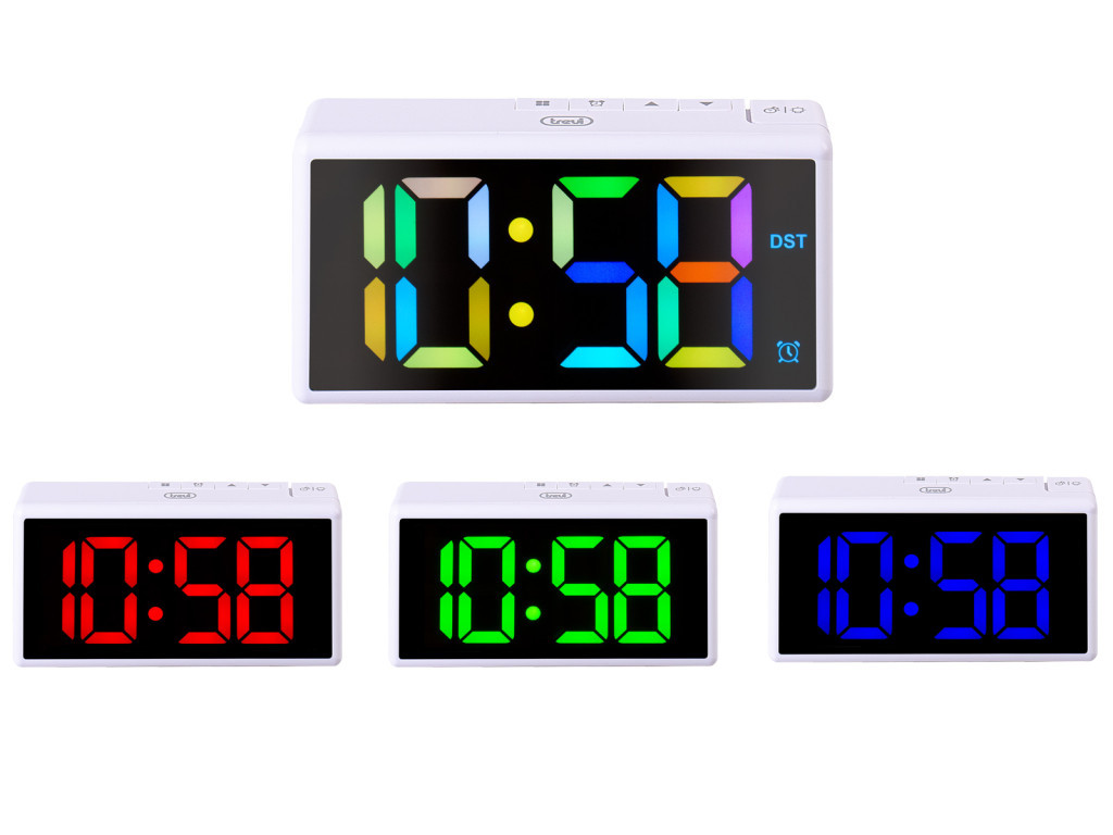 Trevi EC 886 White Digitális ébresztőóra nagy méretű, többszínű kijelzővel - fehér színben