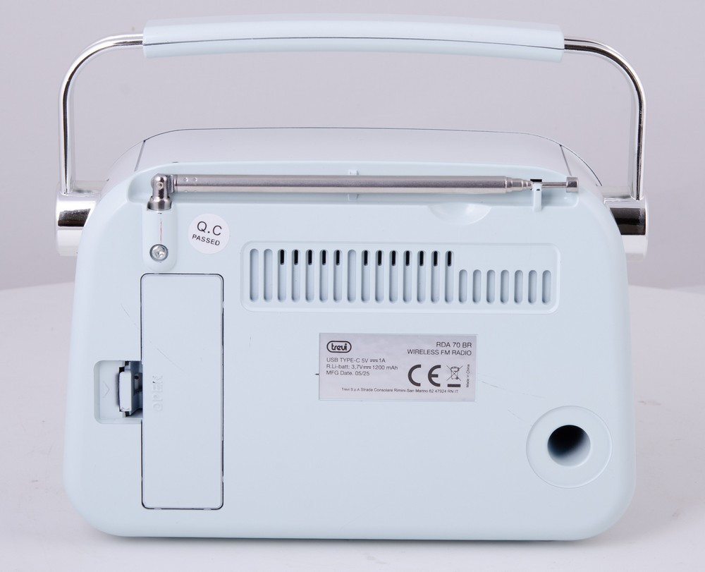 A rádió beépített lítium akkumulátorral rendelkezik, amelyet modern USB Type-C csatlakozón keresztül tölthetsz. Ez gyors, kényelmes és univerzális töltést biztosít. A hosszú üzemidőnek és a mindössze 630 grammos súlynak köszönhetően a Trevi RDA 70 BR tökéletes választás utazásokhoz, nyaralásokhoz vagy szabadtéri használatra.