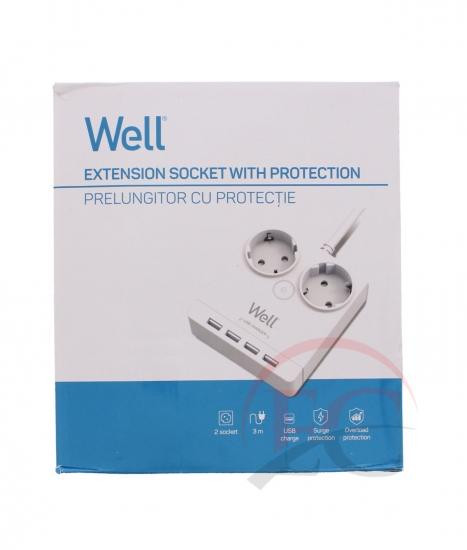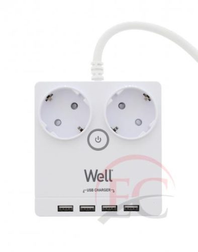 Well EXTS-2S3M-PROT/USB4-WL Kettő férőhelyes földelt kapcsolós elosztó + 4x USB