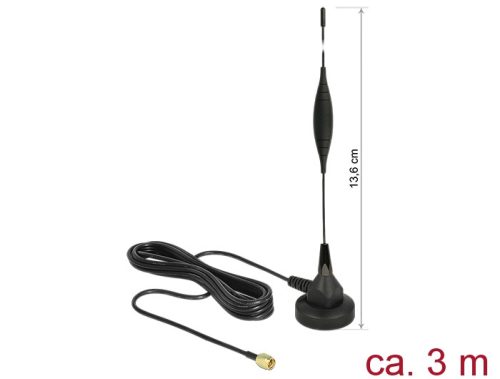 Delock GSM antenna SMA-dugó 5 dBi irányítatlan, rögzített, mágneses talppal és csatlakozókábellel (R (DL-12422)
