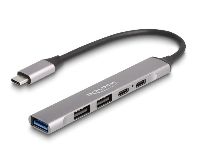 Delock 4 portos vékony USB Type-C Hub 1 x A-típusú USB 10 Gbps, 2 x USB 2.0 A-típusú és 1 x USB 2.0 USB Type-C , valamint PD 95 W (DL-64298)