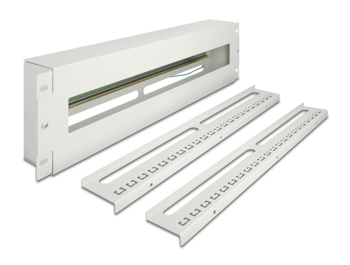 Delock 19  áramkör megszakító kábelrendező csík borítóval és DIN sínnel 3U fém, szürke (DL-67196)