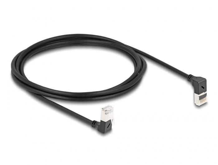 Delock RJ45 hálózati kábel Cat.6A S/FTP vékony 90 fokban felfelé / lefelé hajló 2 m fekete (DL-80294)