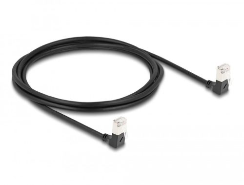 Delock RJ45 hálózati kábel Cat.6A S/FTP vékony 90  fokban lefelé / lefelé hajló 2 m fekete (DL-80300)