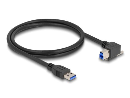 Delock USB 5 Gbps kábel A-típusú USB apa egyenes B-típusú USB apa csavarral 90 -ban jobbra hajlított 1 m fekete (DL-80484)