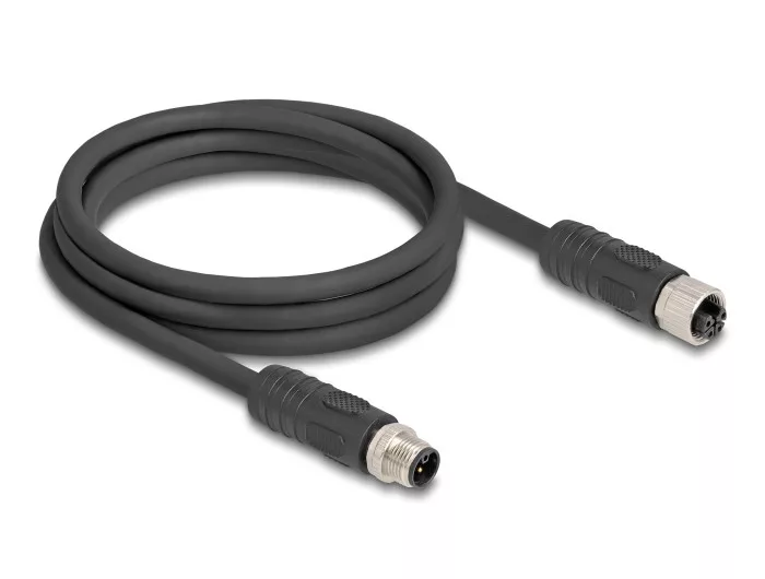 Delock M12 kábel L-kódolt 4 tűs apa - anya PUR húzóláncokhoz alkalmas 2 m fekete (DL-80520)