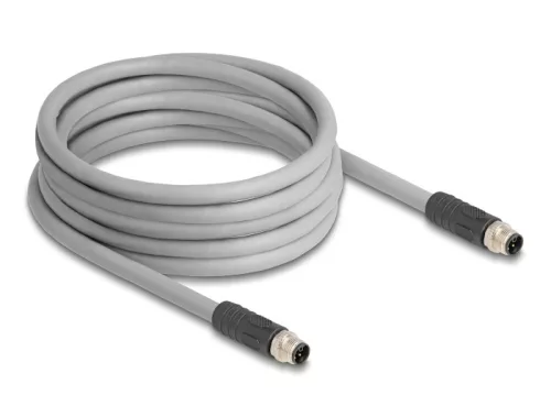 Delock M12 kábel L-kódolt 5 tűs apa - apa PUR húzóláncokhoz alkalmas 5 m szürke (DL-80536)