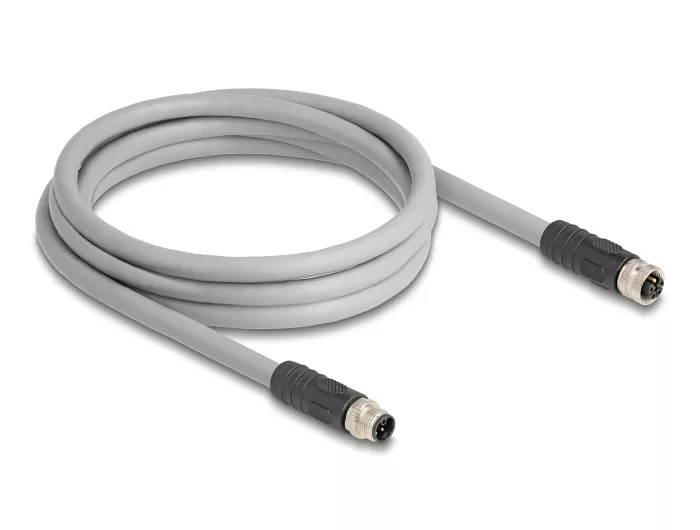 Delock M12 kábel L-kódolt 5 tűs apa - anya PUR húzóláncokhoz alkalmas 2 m szürke (DL-80539)