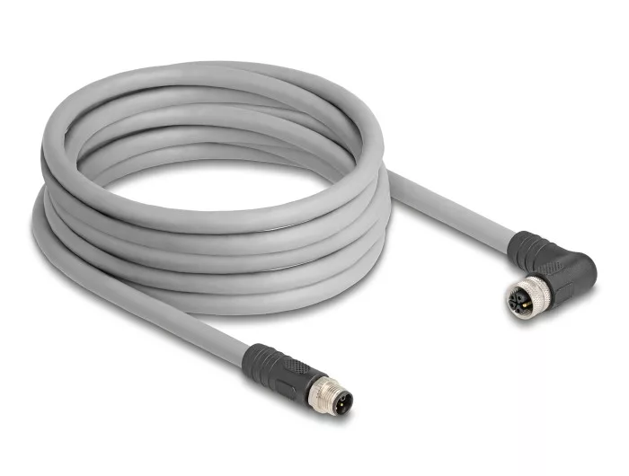Delock M12 kábel L-kódolt 5 tűs egyenes apa   jobbra hajlított anya PUR húzóláncokhoz alkalmas 5 m szürke (DL-80545)