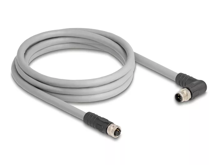 Delock M12 kábel L-kódolt 5 tűs jobbra hajlított apa   egyenes anya PUR húzóláncokhoz alkalmas 2 m szürke (DL-80548)