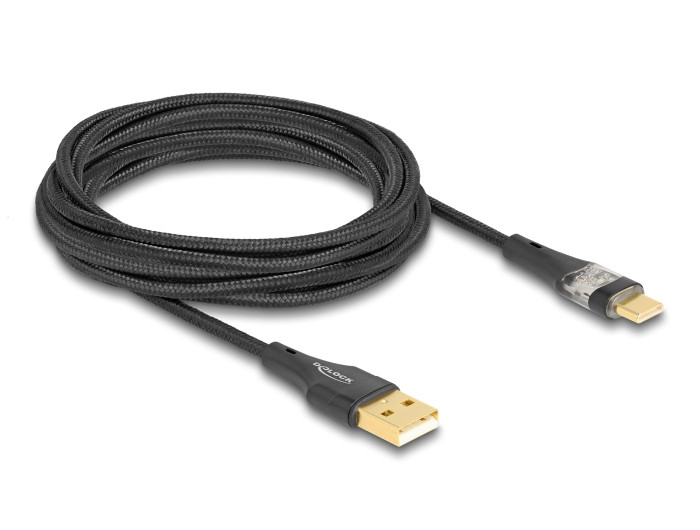 Delock USB 2.0 kábel A-típusú apa - USB Type-C apa gyors töltővel 60 W áttetsző 3 m (DL-80762)