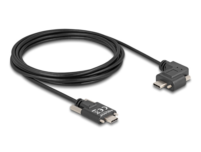 Delock USB 2.0 kábel USB Type-C  apa csatlakozó csavarokkal - USB Type-C  apa csatlakozó csavarokkal ívelt bal / jobb PD 3.0 60 W 3 m (DL-80958)