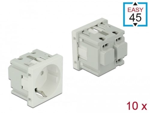 Delock 45 x 45 mm méretű, Easy 45 földelt hálózati csatlakozóaljzat, 10 db. Fekete (DL-81320)