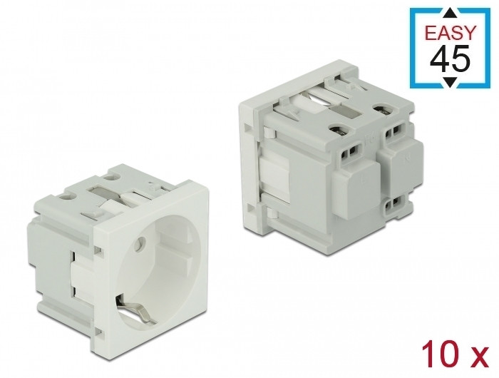 10 x 45 x 45 mm méretű, Easy 45 földelt hálózati csatlakozóaljzat