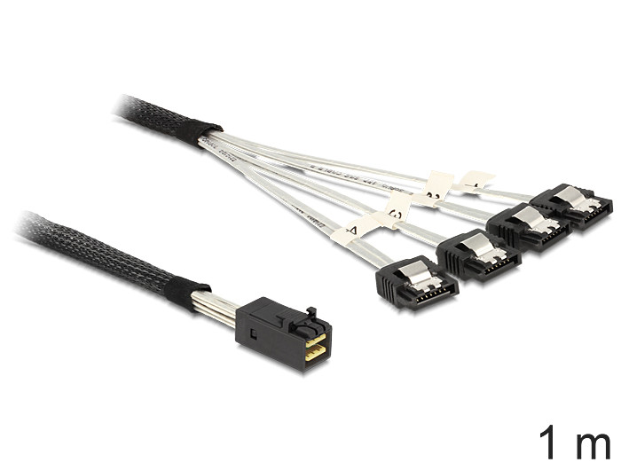 Delock Mini SAS HD x 4 SFF 8643 apa > 4 x SATA 7 Pin anya kábel, 1 m (DL-83393)
