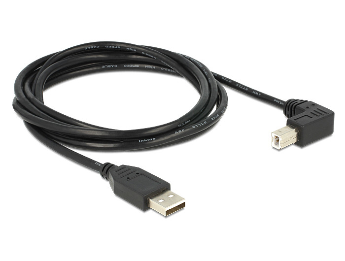 Delock USB2.0 kábel USB A dugó - USB B 90 dugó csatlakozókkal, 2m (DL-83528)