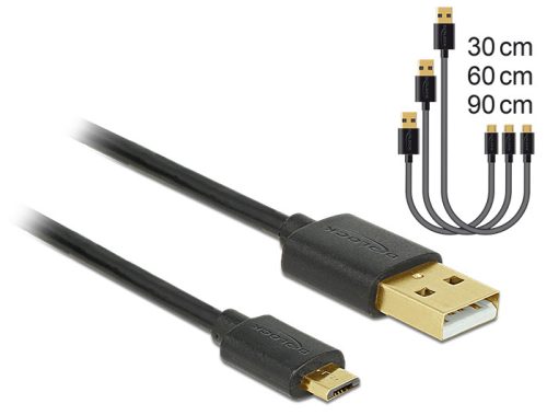 Delock Adat- és tölto kábel USB 2.0 A-típusú csatlakozóval > USB 2.0 Micro B típusú csatlakozó 3 db (DL-83680)
