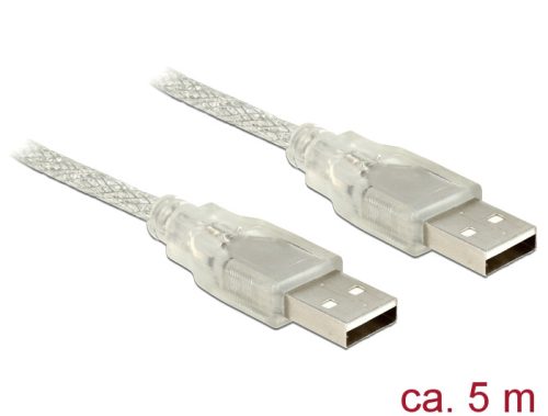 Delock USB 2.0-s kábel A-típusú csatlakozódugóval > USB 2.0-s, A-típusú csatlakozódugóval, 5 m, átte (DL-83891)