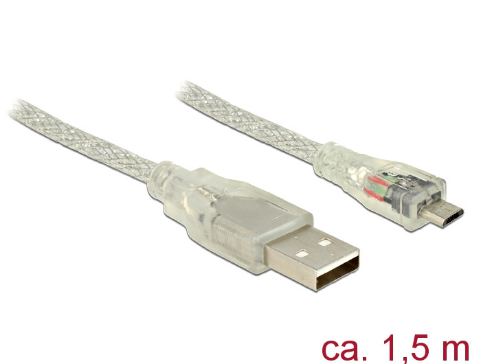 Delock USB 2.0-s kábel A-típusú csatlakozódugóval > USB 2.0 Micro-B csatlakozódugóval, 1,5 m, áttets (DL-83899)