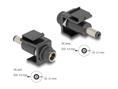 Delock Keystone modul, DC 5,5 x 2,1 mm-csatlakozóhüvely, DC 5,5 x 2,1 mm méretű apa, fekete (DL-84162)