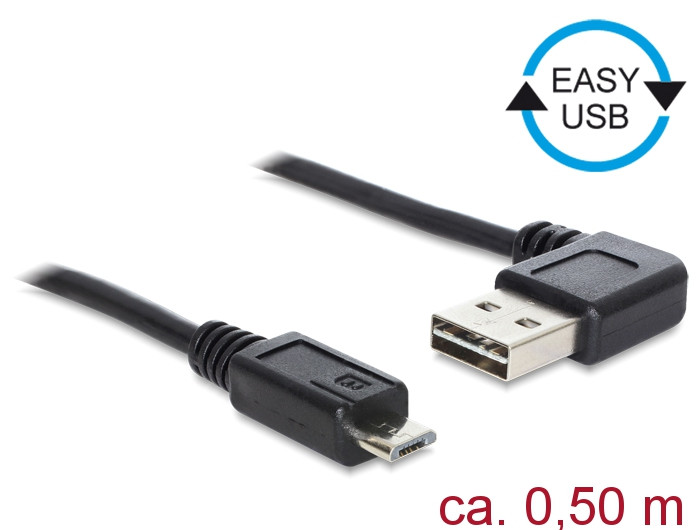 Delock Kábel, EASY-USB 2.0-s A- típusú csatlakozódugó, ívelt bal / jobb > USB 2.0-s Micro-B-típusú c (DL-85163)