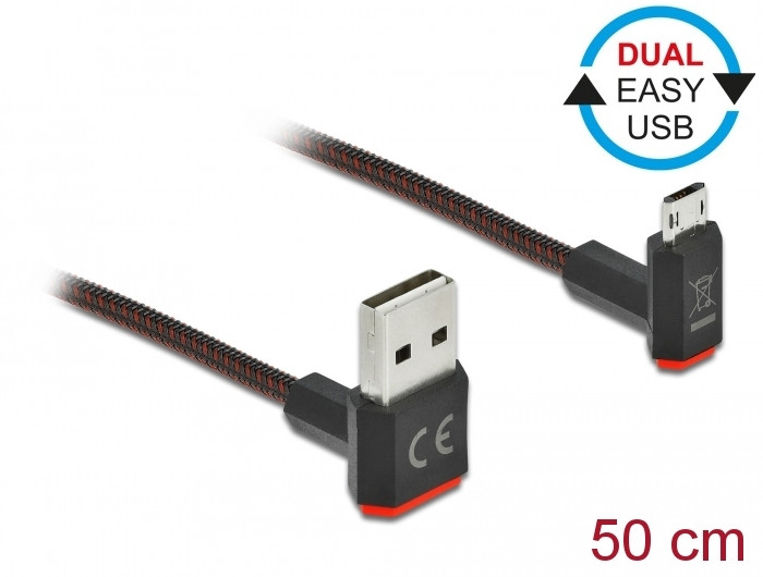 Delock EASY-USB 2.0 kábel A-típusú csatlakozódugó - EASY-USB Micro-B típusú csatlakozódugó, ívelt fe (DL-85265)