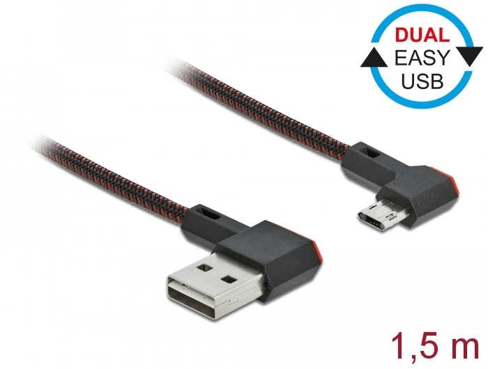 Delock EASY-USB 2.0 kábel A-típusú csatlakozódugó - EASY-USB Micro-B típusú csatlakozódugó, ívelt ba (DL-85272)