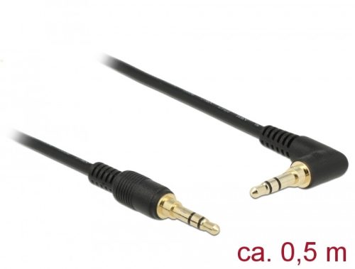 Delock Sztereó Jack Kábel 3,5 mm 3 tűs férfi > férfi szögben hajlított 0,5m fekete (DL-85564)