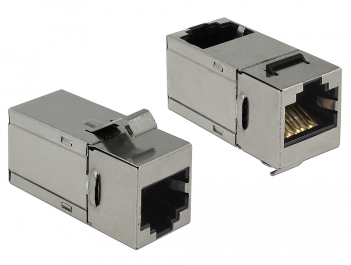 Ez a Delock modul hálózati kábelek kibővítésére használható. Szabványos méretének köszönhetően egyszerű rögzítésre használható (pl. Keystone patch panelhez, védőlemezhez vagy felületre szerelhető dobozhoz).