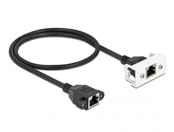 Ez a Delock hálózati kábel használható különböző eszközök meghosszabbítására és összekapcsolására. A csavarozható RJ45 anya port összekapcsolható a Delock Easy 45 modulhoz. Az egyszerű csatlakoztatási mechanizmus biztosítja, hogy a modul megfelelő helyzetbe kerül és könnyen ki is húzható, amennyiben szükséges.
