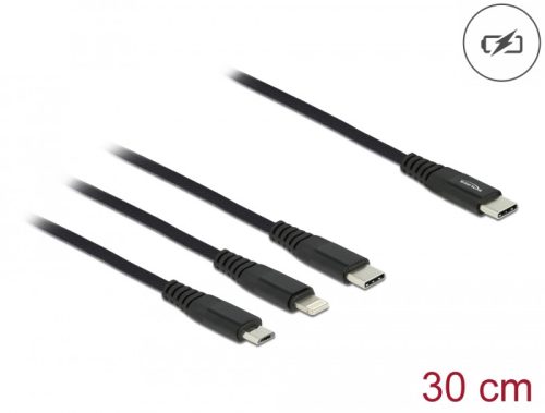 Delock 30 cm hosszú, USB töltő kábel 3 az 1 USB Type-C  apa Lightning -, Micro USB- és USB Type-C  c (DL-87148)