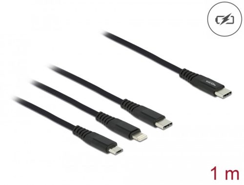 Delock 1 m hosszú, USB töltő kábel 3 az 1 USB Type-C apa Lightning -, Micro USB- és USB Type-C csa (DL-87149)