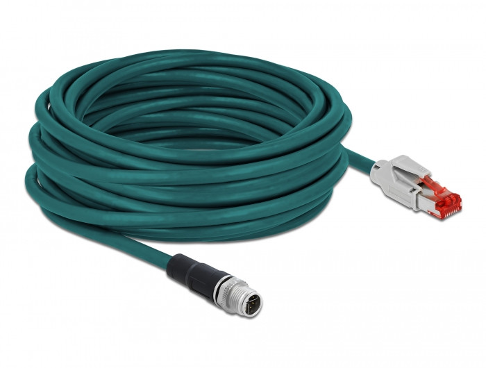 Delock Hálózati kábel M12 8 tűs X-kódú RJ45 csatlakozóhoz PVC borítás 10 m hosszú (DL-87845)