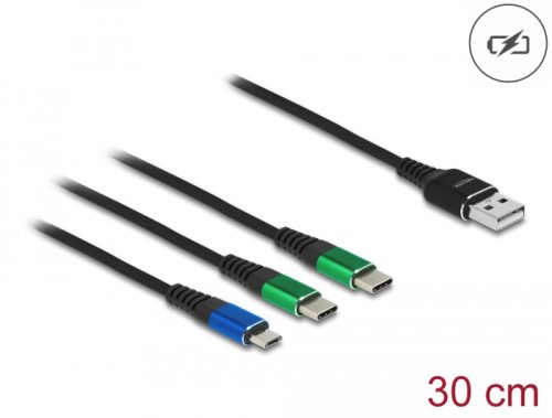 Delock 30 cm hosszú, USB töltő kábel 3 az 1 A-típusú apa Micro USB -, es 2 x USB Type-C csatlakozáshoz (DL-87883)