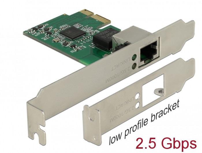 A Delock PCI Express-kártya egy hálózati portot biztosít max. 2500 Mbps adatátviteli sebességgel.