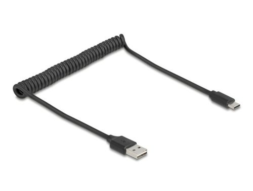 Delock tekercselt kábel EASY-USB 2.0 Type-A apa USB Type-C apa 0,5 m - 0,8 m fekete (DL-90133)