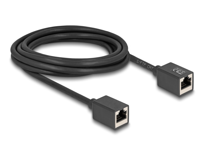 Delock Hálózat bővítő kábel RJ45 anya - RJ45 anya Cat.6A S/FTP 3 m fekete (DL-90332)