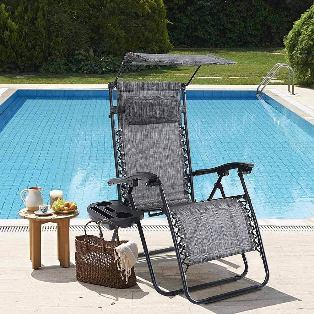 Timeless Garden Zéró gravitáció szék napellenzővel és pohártartóval 2 db, több színben-szürke (HOP1001529-1)