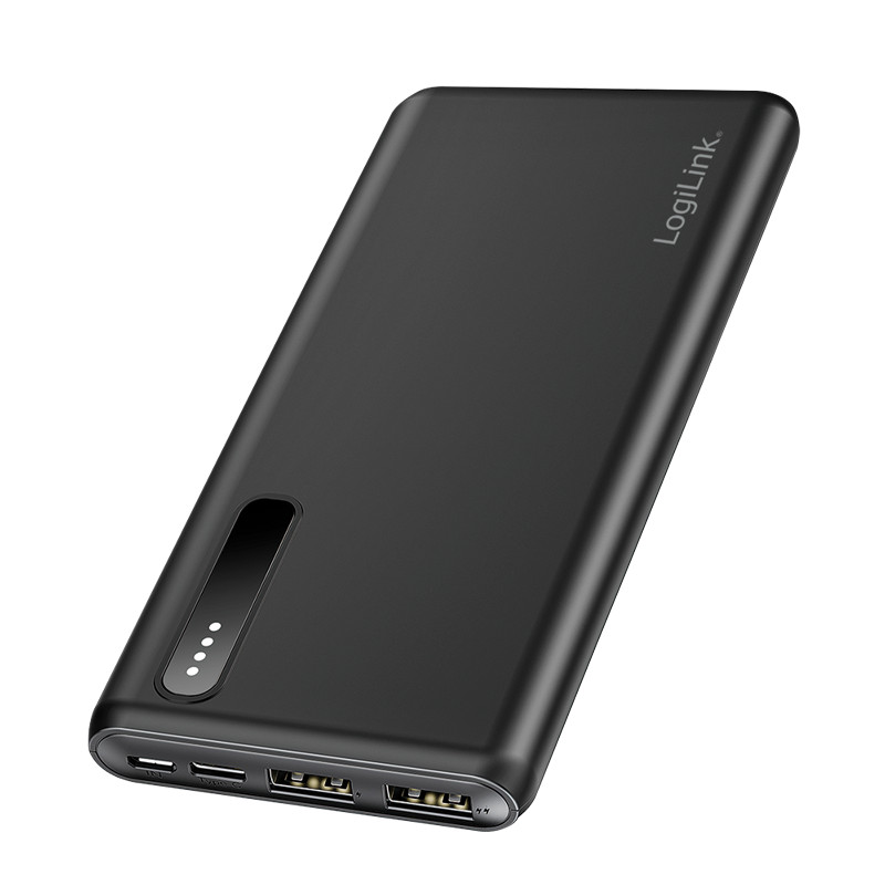 Logilink Power bank 8000 mAh, 2x USB-A, 2 az 1-ben kábel, fekete (PA0311)